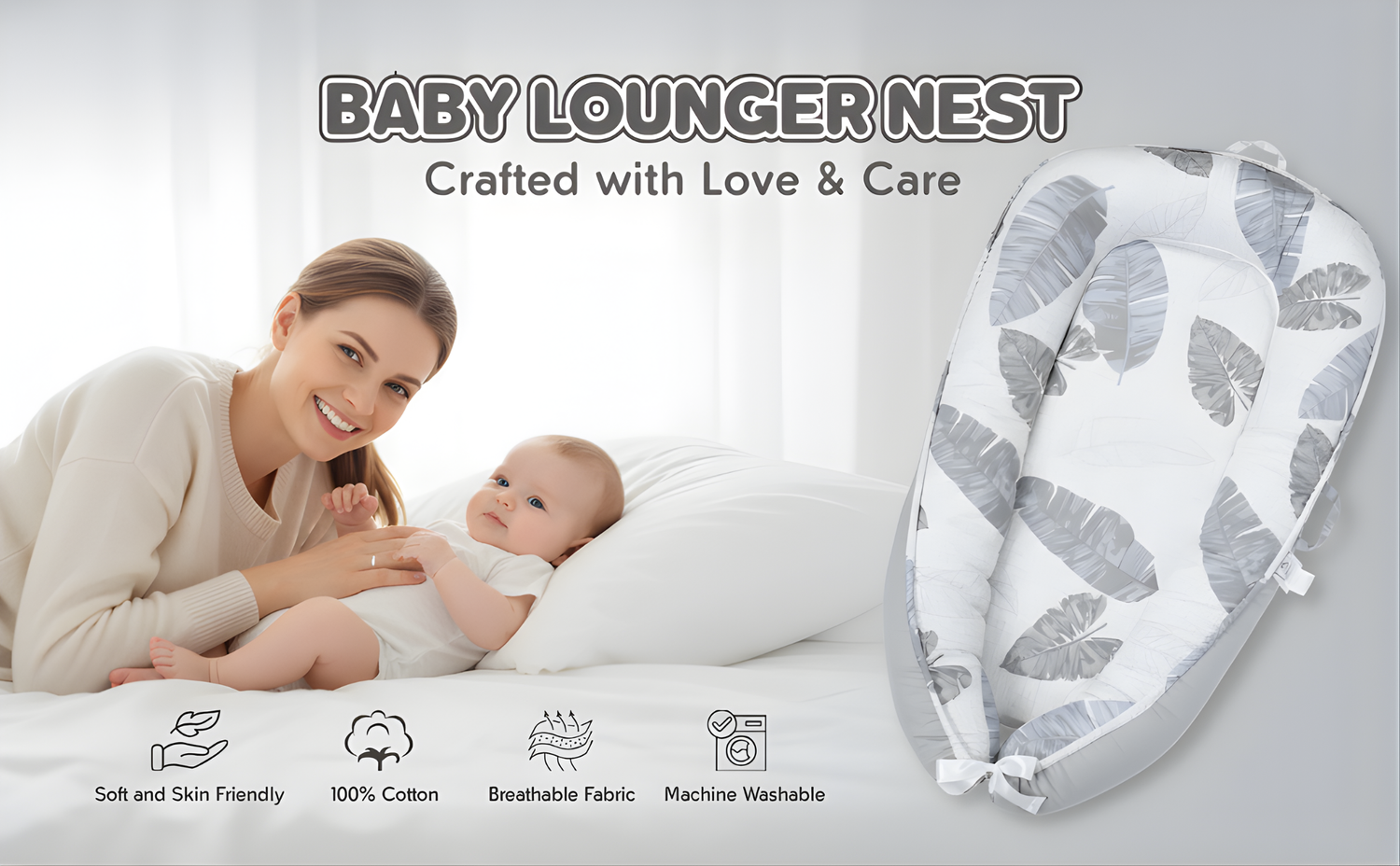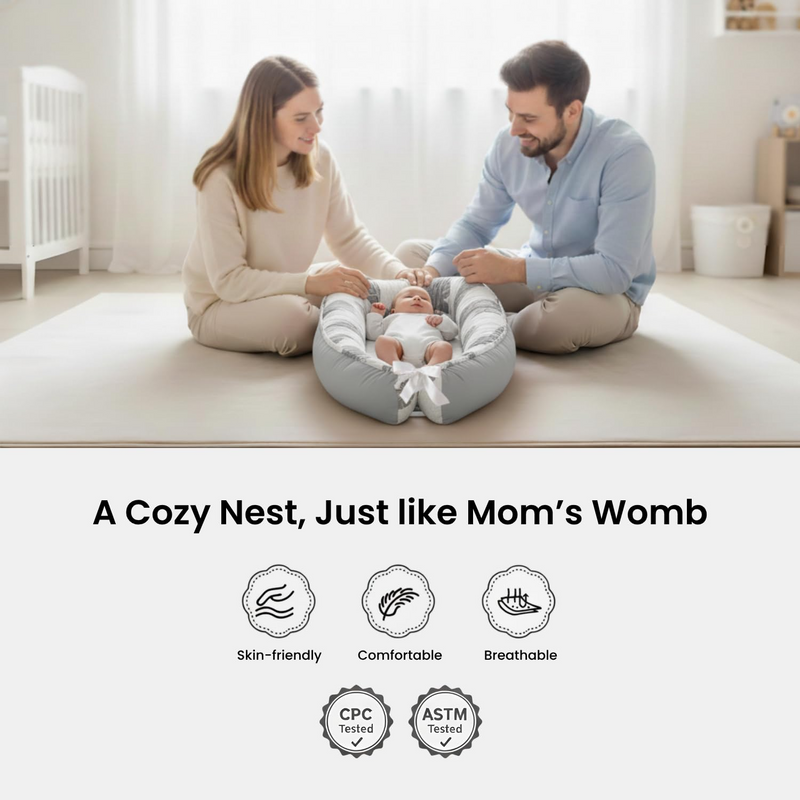 Our baby loungers are crafted with certified organic cotton and hypoallergenic filling for maximum comfort and safety.